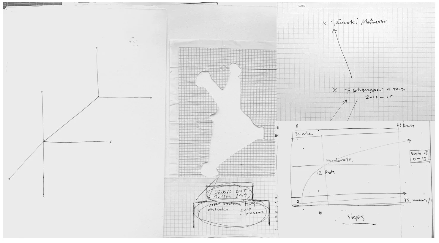 Tiller toward or away from the / a leviathan? What does it take to manage a trajectory. What are the fictions present in the becoming trajectory? (eg: saw horses swapped with Graham Hoyte, documentation of navigations…)